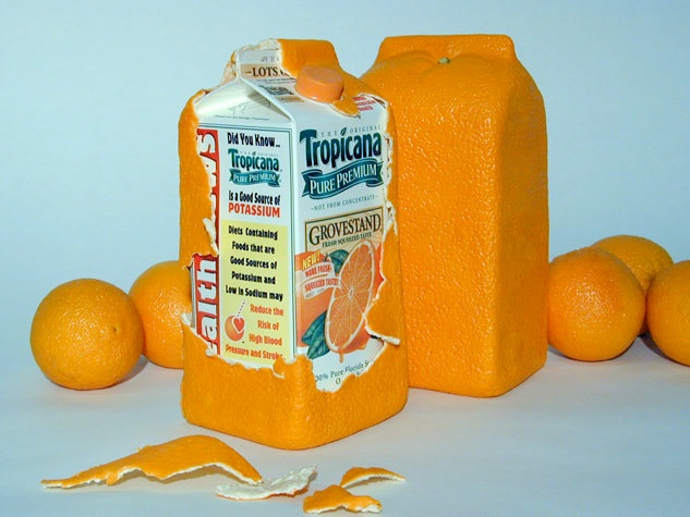For a Tropicana TV spot we developed a technique for creating realistic artificial orange peel that could encapsulate the product and be peeled off at will.