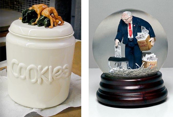 An Abu Grhraib-themed cookie jar and a Dick Cheney Snow Globe for Philip Toledano’s “America the Gift Shop” series.