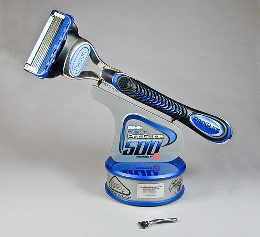 600% oversized version of Gillette’s newest fustion Razor. This one was made into a trophy for Gillette sponsored Nascar event.